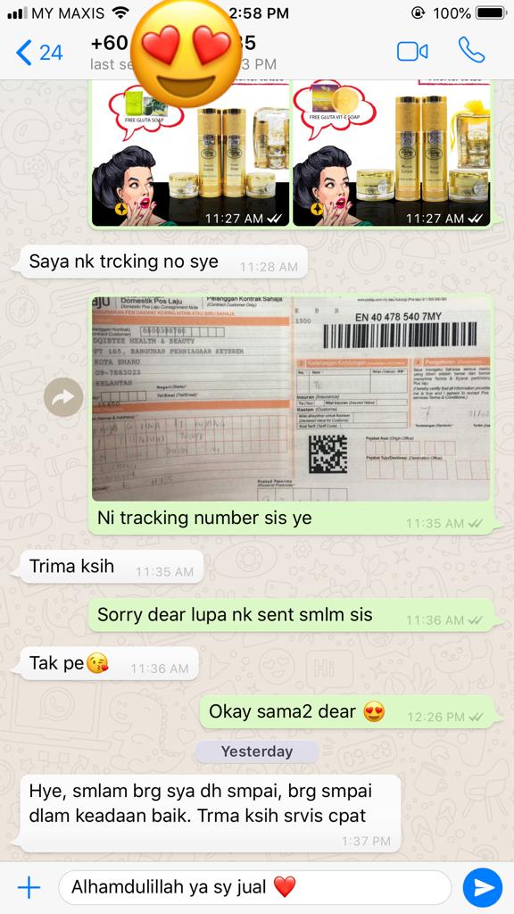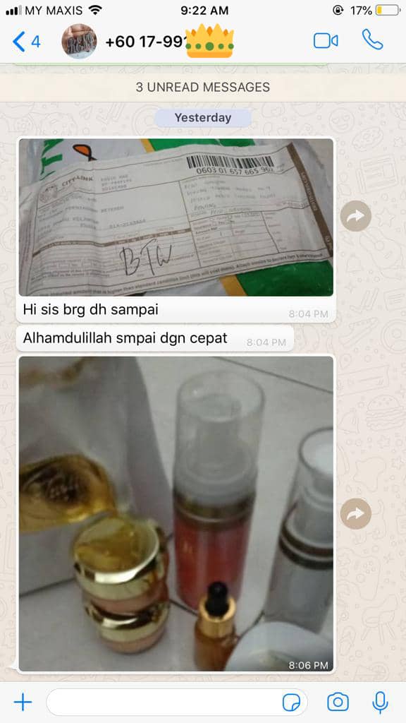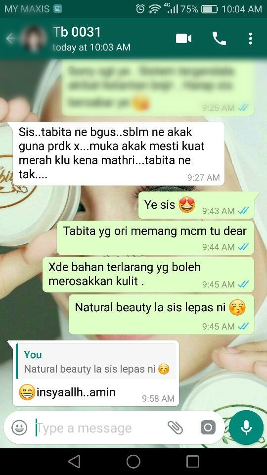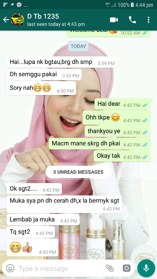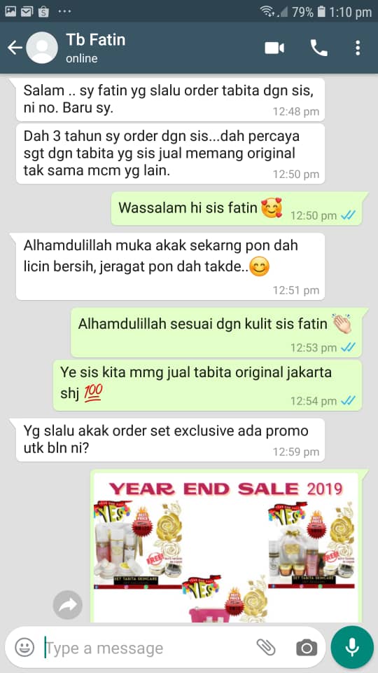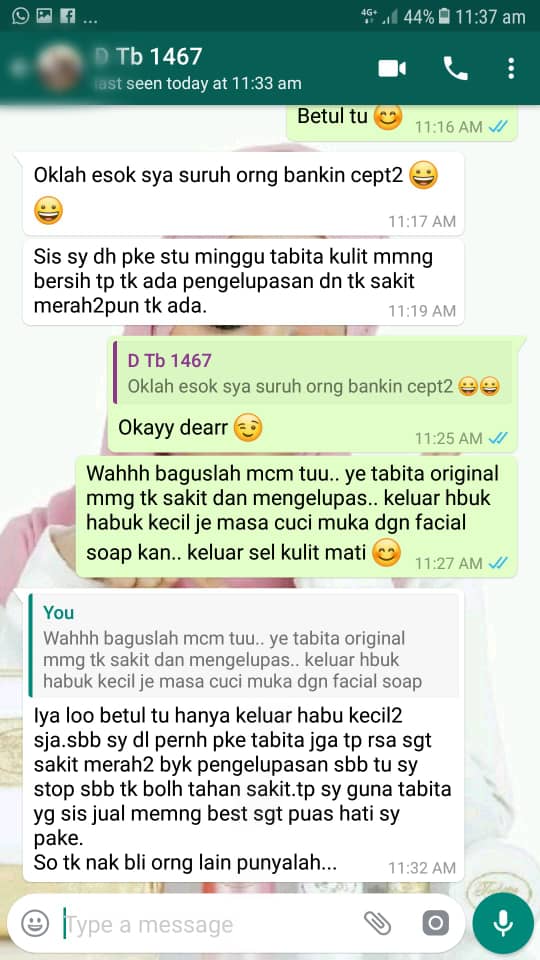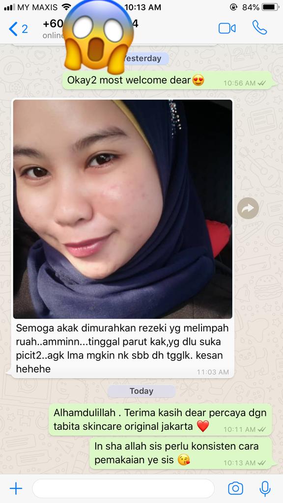 Kami amat berbesar hati untuk menerima feedbacks yang baik dari semua pengguna setia kami. Sesungguhnya, kami telah beroperasi selama lebih 10 tahun dalam membekalkan produk Tabita Skincare original yang sah diimport dari Jakarta, Indonesia. Produk Tabita Skincare kami mempunyai kelulusan dari BPOM (Badan Pengawasan Obat & Makanan) dari kerajaan Indonesia.